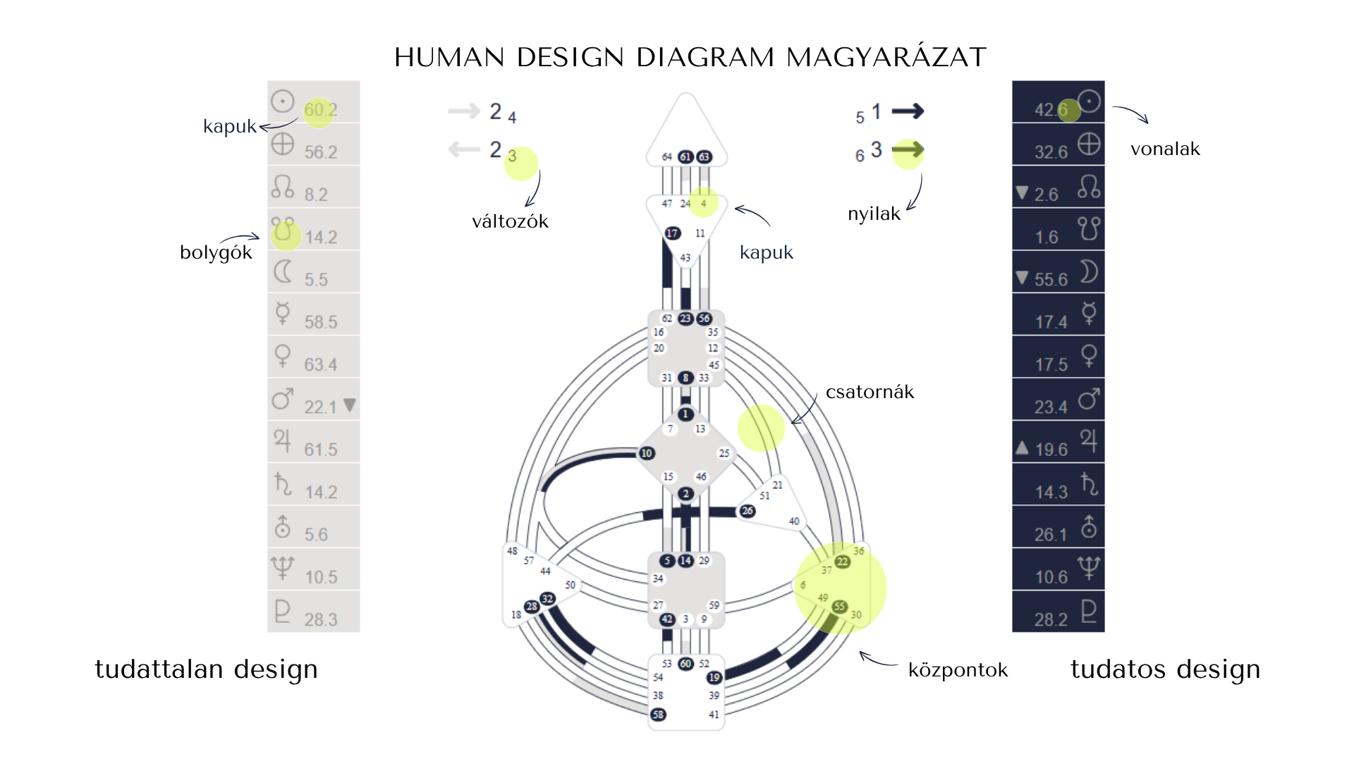 Fontos leszögezni, hogy mindenkinek minden része megvan, adott a diagrammon. Nincs olyan, hogy “Nekem nincs fej központom” vagy “Nekem nincs 19-es kapum”. Mindenki rendelkezik minden elemmel, a különbség csupán annyi, hogy máshogy használjuk, hasznosítjuk őket